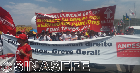 E podemos dizer que esse ato foi, até o momento, o ponto alto da Campanha Unificada 2016 do funcionalismo federal. Mais de 10 mil trabalhadores e estudantes tomaram a Esplanada dos Ministérios, em Brasília-DF, demonstrando resistência aos ataques do presidente golpista contra a classe trabalhadora – principalmente contra o PLP 257/2016, a PEC 241/2016, a reforma da previdência e a reforma trabalhista.