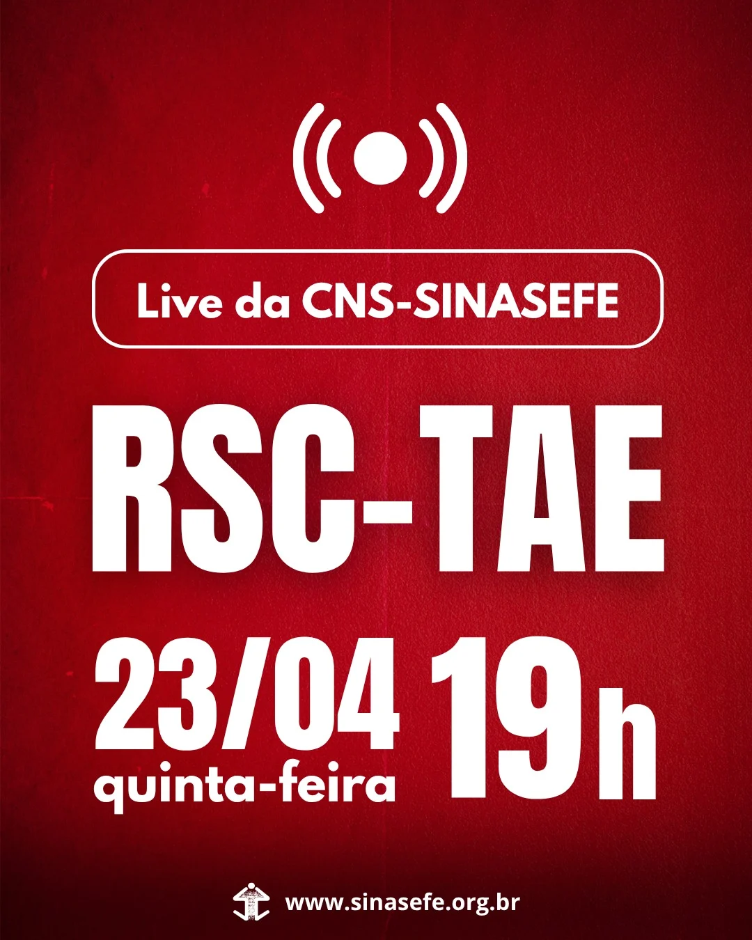 A Comissão Nacional de Supervisão (CNS) do SINASEFE realizará na próxima quinta-feira (23/04), às 19 horas, uma live sobre o Reconhecimento de Saberes e Competências dos Técnico-Administrativos em Educação (RSC-TAE).