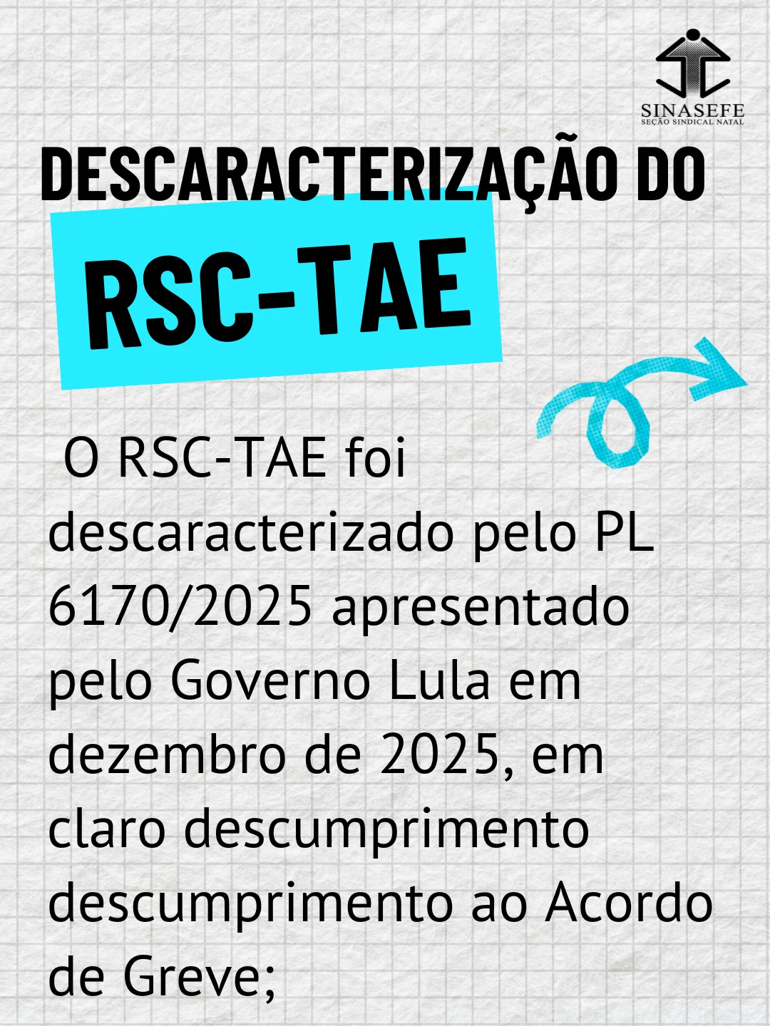 – O RSC-TAE foi descaracterizado pelo PL 6170/2025, apresentado pelo Governo Lula em dezembro de 2025, em claro descumprimento descumprimento ao Acordo de Greve;