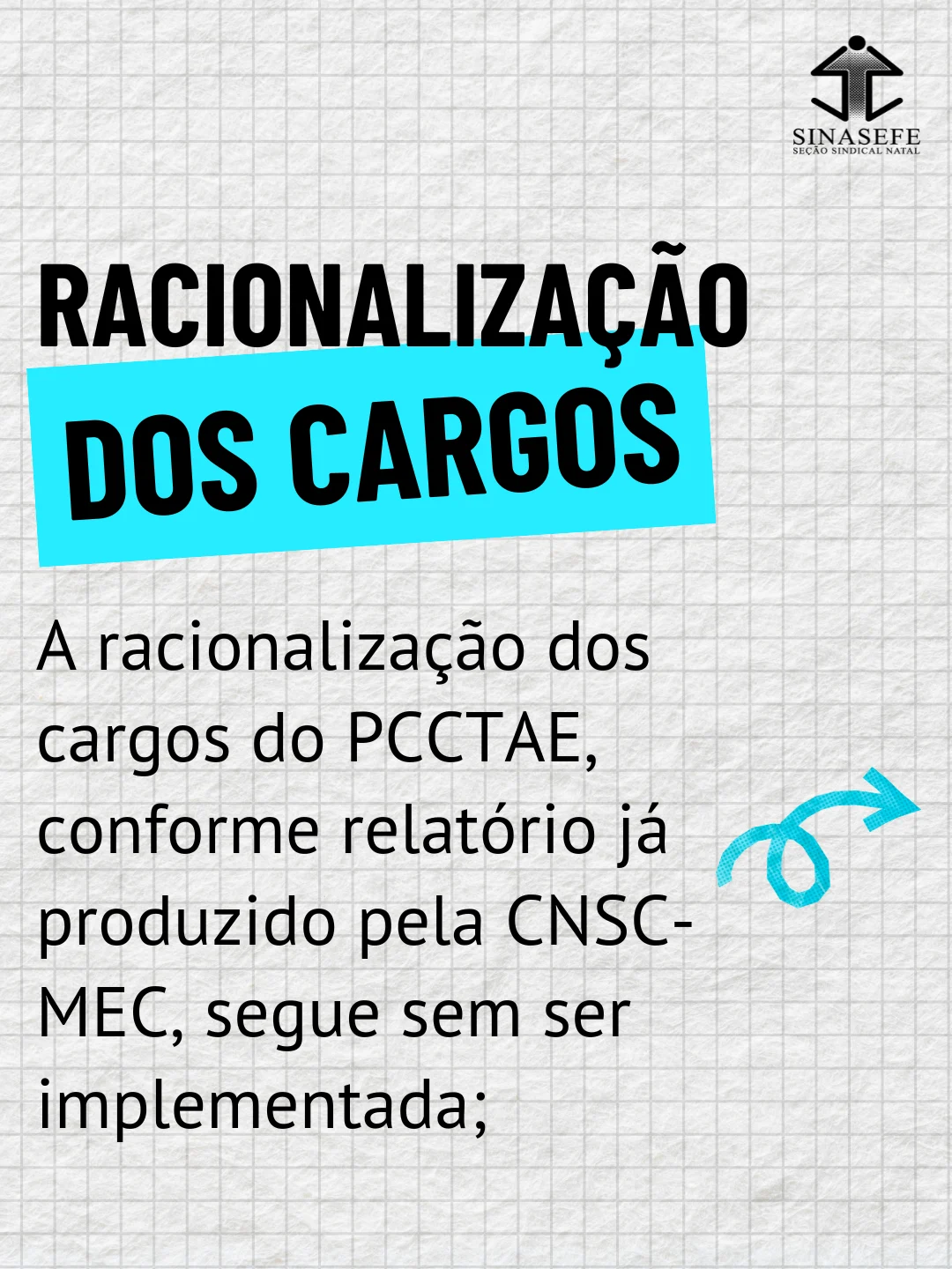 – A racionalização dos cargos do PCCTAE, conforme relatório já produzido pela CNSC-MEC, segue sem ser implementada;