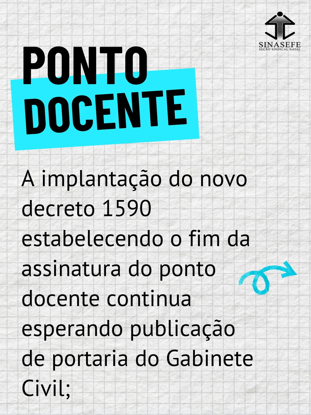 – A implantação do novo decreto 1590 estabelecendo o fim da assinatura do ponto docente continua esperando publicação de portaria do Gabinete Civil;