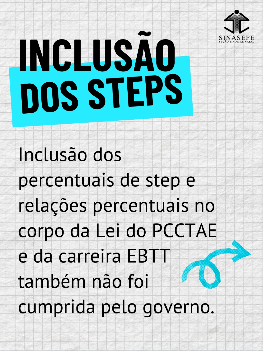 – Inclusão dos percentuais de step e relações percentuais no corpo da Lei do PCCTAE e da carreira EBTT também não foi cumprida pelo governo.