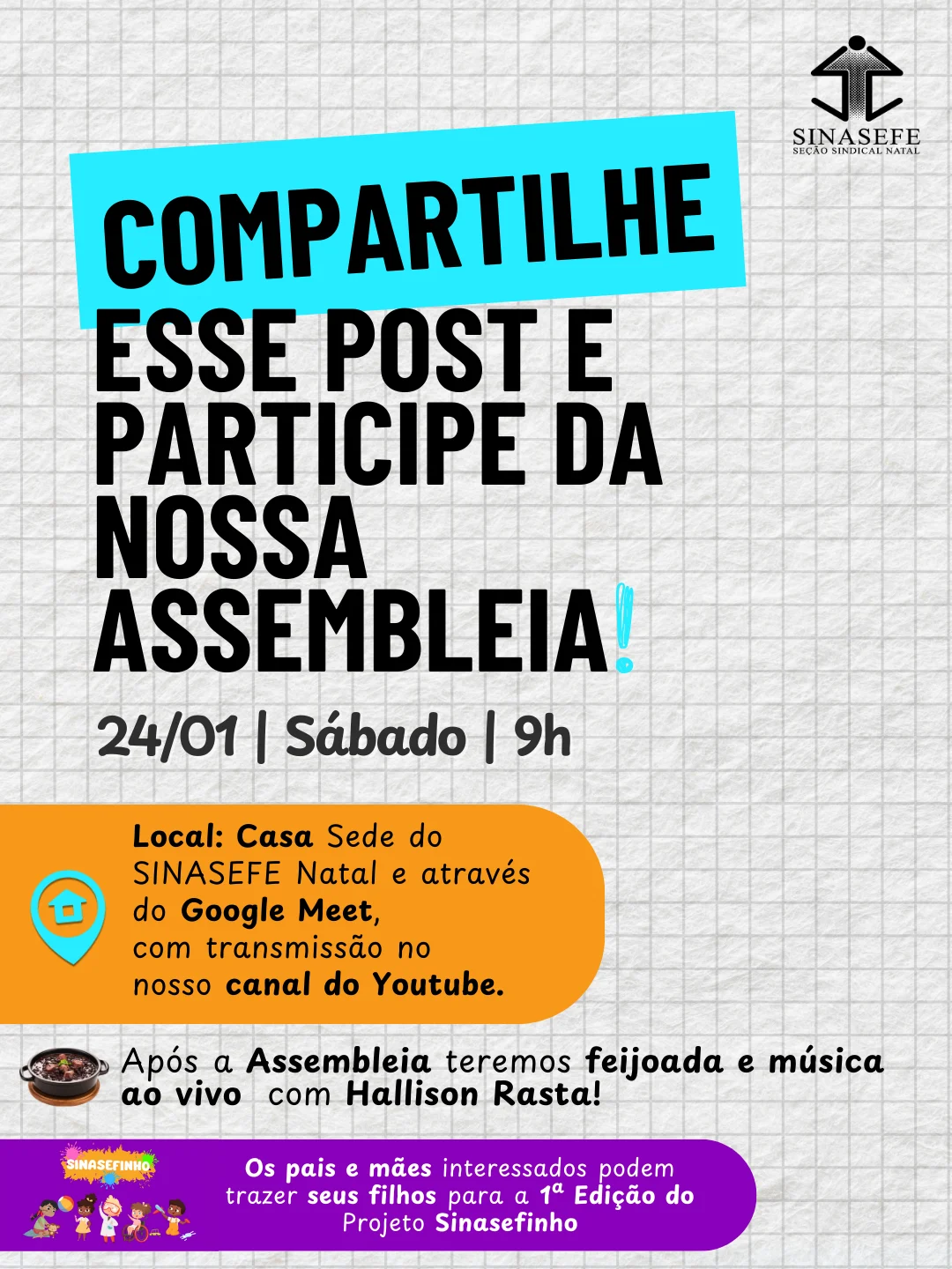 Confira a pauta completa e saiba mais: https://www.sinasefern.org.br/sinasefe-natal-realiza-primeira-assembleia-geral-de-2026-no-dia-24-de-janeiro/