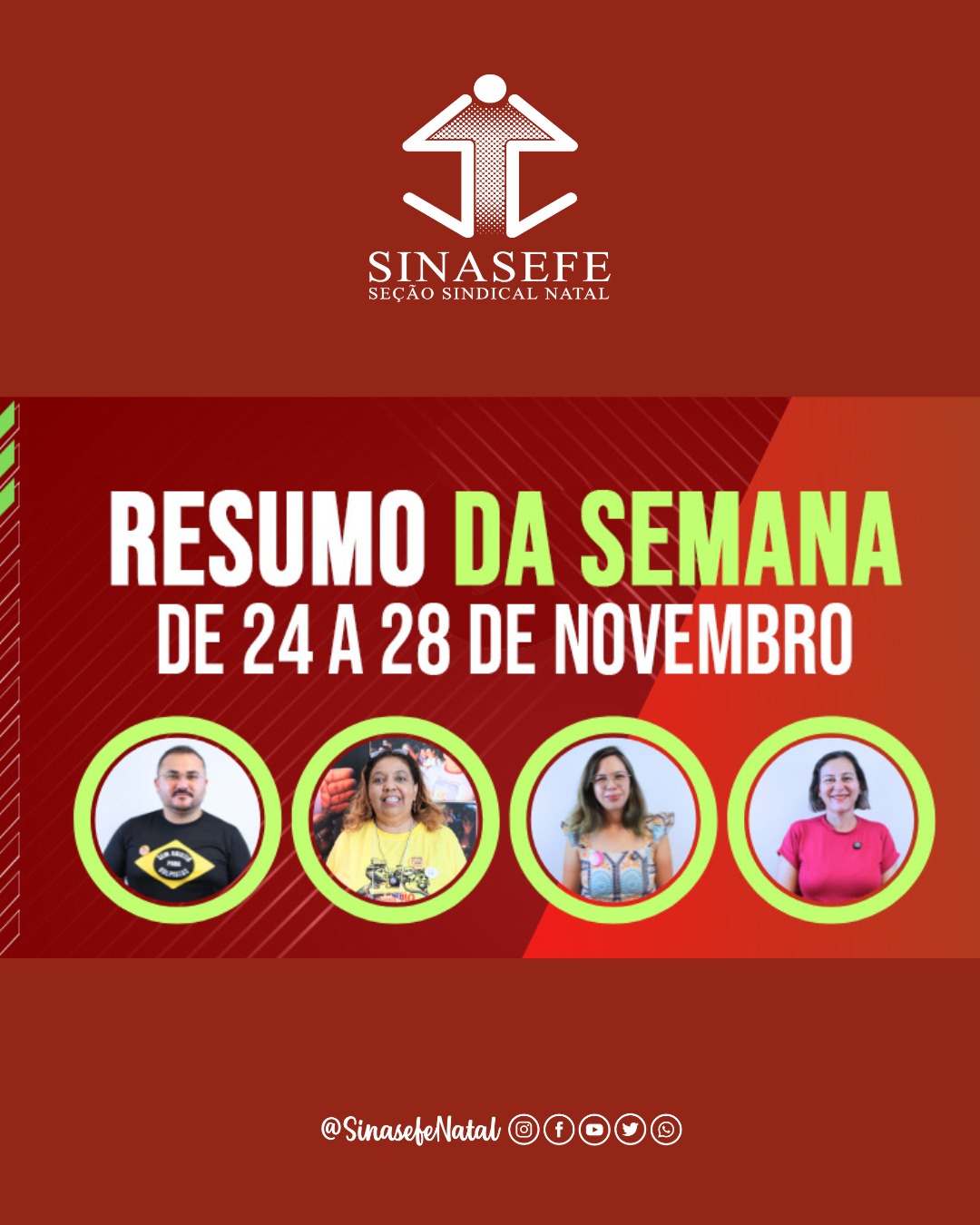 O plantão da semana apresenta um resumo, em vídeo, das atividades em que a Direção Nacional (DN) do SINASEFE esteve envolvida no período (24 a 28 de novembro).