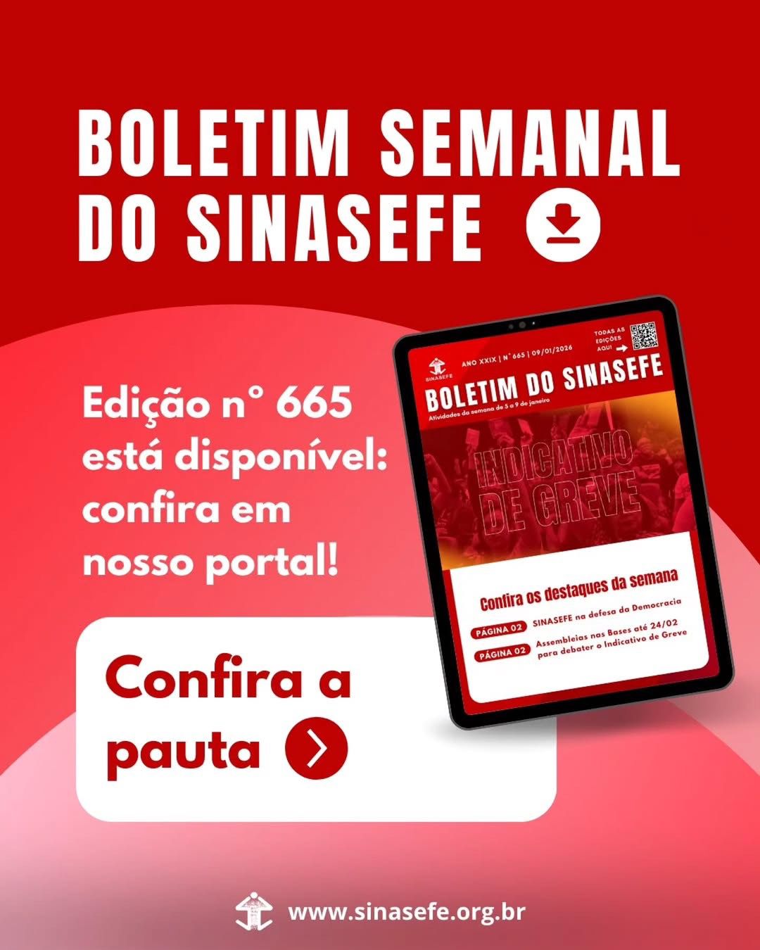 O sindicato lança nesta sexta-feira (09/01) o Boletim do SINASEFE nº 665.