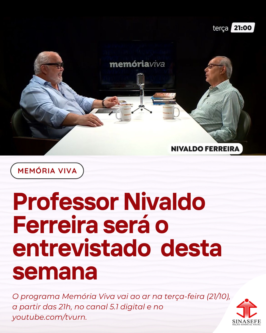O Memória Viva desta terça-feira (21/10) recebe o professor Nivaldo Ferreira, nosso sindicalizado desde a fundação do SINASEFE Natal e parceiro nas lutas.
