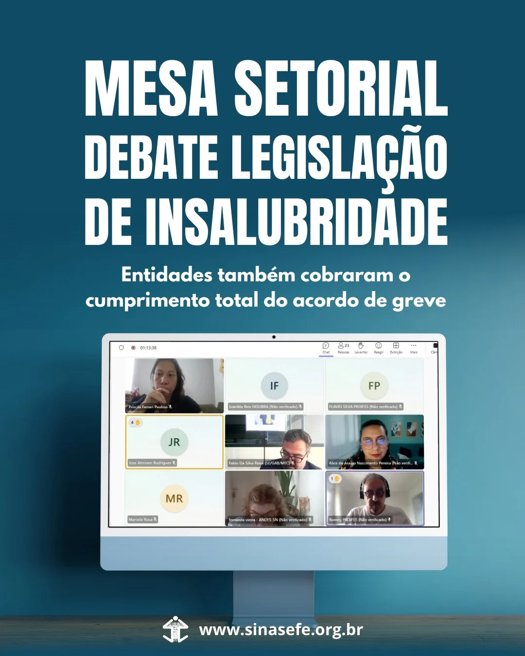 Aconteceu nesta terça-feira (10/03), de modo virtual, a 1ª Reunião Extraordinária da Mesa Setorial de Negociação Permanente (MSNP). O tema em debate na ocasião foi insalubridade, com análise das normativas e legislação pertinentes.